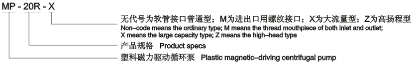 X——無代號為普通型;M為進出口用螺紋接口;X為大流量型;Z為高揚程型;T為特殊用途;N為改進型。